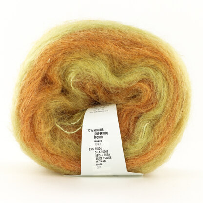 77% Mohair 23% Silk, 382yds (349m)/50g (1.76oz), DK | Light Worsted