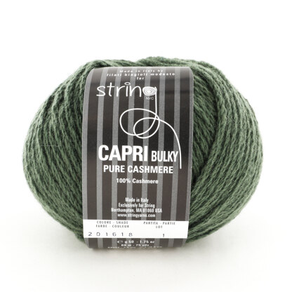 String Capri Bulky is a gorgeous 100% cashmere yarn with a soft hand. This woolen spun yarn produces a halo of softness and is light as air. Perfect for luxurious accessories and sweaters, Capri Bulky works up quickly on large needles and hooks. For a lighter weight, check out String Capri DK.