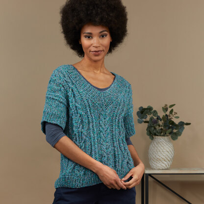 Bold cables give the Tahki Yarns Lakeridge Pullover a standout style while cotton and silk blend Whidbey lends its stay-cool feel. With a deep v-neckline, dropped shoulders, and short sleeves, this top has amazing versatility in your wardrobe. Wear it alone in the summer and layer it over long sleeve tees or buttondowns once the weather cools, knowing that it’s adding sophisticated style to any ensemble. The Lakeridge Pullover is knit flat in pieces and seamed with the ribbed neck and armbands picked up and worked in the round during finishing. Cable patterns are both charted and written out.