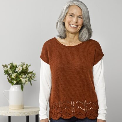 the beautiful lace bottom border. The women’s pullover is knit in the round