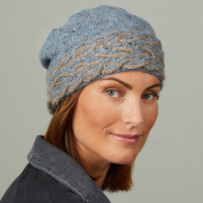 Enjoy a fun twist to a cozy hat with Valley Yarns Jabara! Beginning with a two-color cabled brim worked flat and seamed, the rest of the hat will fly off your needles worked in the round in simple stockinette stitch. Both the cabled and stockinette stitch sections get a texture boost from Valley Yarns Worthington, a tweedy blend of wool, alpaca, viscose that comes in a great range of coordinating colors. Grab your favorite pair and enjoy Jabara’s fresh approach to hat design! Cable pattern is both charted and written out.