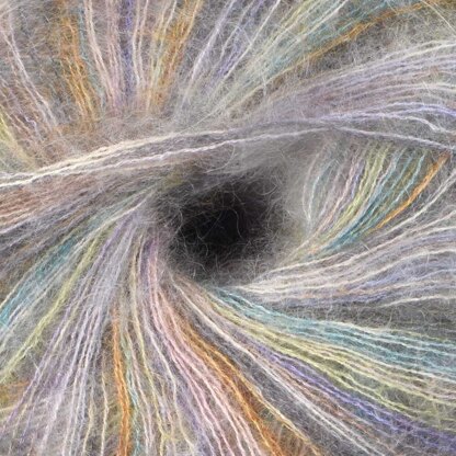 Ariel Color by Berroco is a delicate multi-colored mohair. This yarn is beautiful by itself for a shawl or carried with a solid to add a little fun to a sweater.