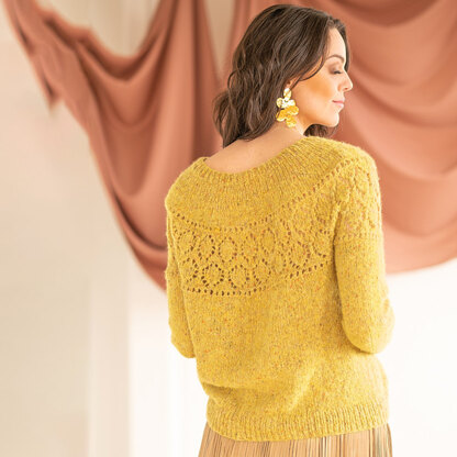 Soft, romantic style meets everyday wearability in Berroco Ballentine with its dreamy lace yoke set into a classic crewneck pullover. This sweater is knit seamlessly from the top down and includes short row shaping at the back neck for fit, and a round yoke construction that sets up the lace panel that gives the finished piece that perfect touch. Berroco Mistico ensures that your finished sweater will be soft, warm, and lightweight with its unique blend of brushed alpaca halo and cotton, wool, and nylon core and it doesn’t sacrifice stitch definition, making it great for lace. Elevate your favorite jeans with Ballentine as a subtle statement sweater or layer it over dresses and tunics to add color and style to flowy ensembles. Lace pattern is both charted and written out.