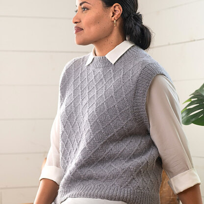 Timeless style meets cozy comfort in Berroco Morel, a cabled crewneck vest that will keep you warm and looking put together with ease. Talara is a worsted weight baby llama yarn that has a luxurious feel and a chainette construction that’s perfect for adding warmth without extra weight. Morel is knit in the round from hem to underarms where the back and front are each knit flat to finish before being seamed at the shoulders. Ribbed trims are picked up and worked in the round at the neckline and armholes to add a clean finish to your finished vest. Pair Morel with anything from tees and leggings at home to buttondowns and dress pants for work, and be comfortable and cozy wherever you need to be. Cable pattern is charted only.