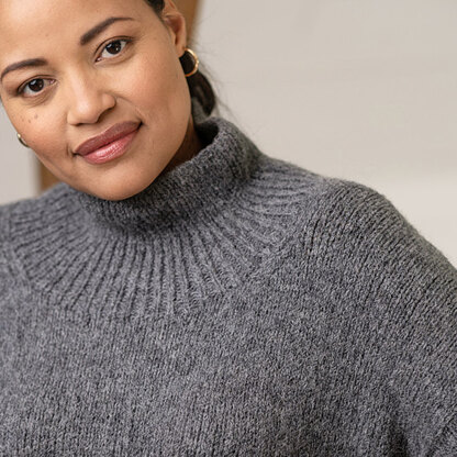 Built for ultimate warmth and comfort, Berroco Tartufo is a tunic-length pullover with a split hem, dropped shoulders, and a deep funnel neck that dials up the coziness factor. Your project begins with the knit-flat ribbed hems which are joined together to work the remainder of the body in the round to the underarms. The back and front are completed separately and seamed at the shoulders with sleeve stitches and neckband stitches picked up and worked in the round to finish. Talara yarn ensures that your sweater will be soft, warm, and have a luxurious yet lightweight feel thanks to its chainette construction and baby llama fiber. Tartufo is the quintessential cozy sweater, perfect for pairing with leggings for a go-to outfit anytime comfort is key—its effortless style is just icing on the cake!