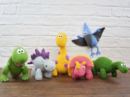 Deramores Dinosaurs PDF download knitting pattern by Amanda Berry. Super cute and fun to make, this toy pattern could be your next masterpiece!