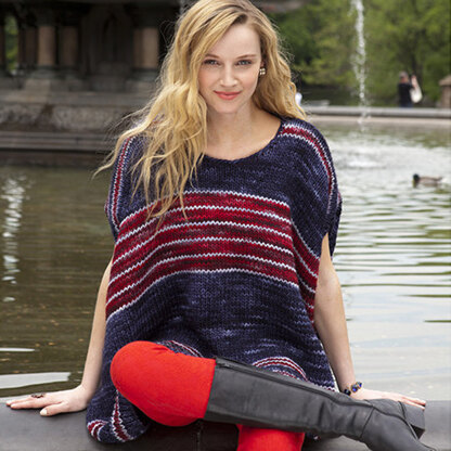 Bethesda is an over-sized, scoop neck top knit in Malabrigo Mecha, a soft, 100% superwash wool yarn. Bold stripes of color and Dolman sleeves add to look of this trendy top.