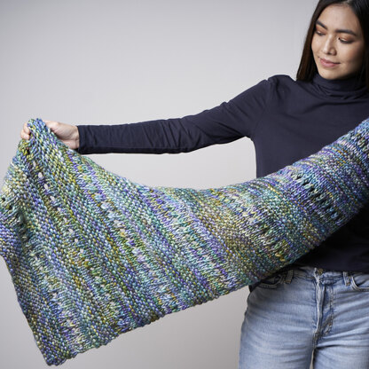 - One Size; 23" wide at cast on and 57½" long at straight edge
