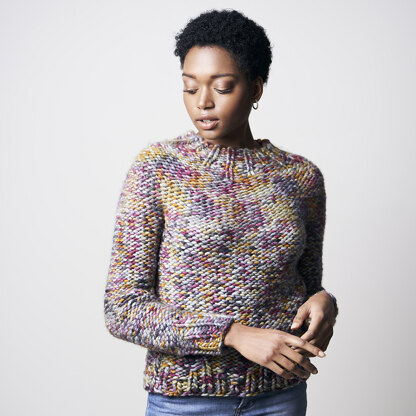 reverse stockinette stitch pullover knit in Rasta, a super-soft, super-bulky