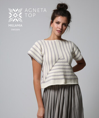The Agneta Top works up so fast in MillaMia Naturally Soft Aran! The front and back are worked the same and seamed together with sleeves added separately. Sassy and sweet, the shaping for this top is flattering for everyone - and, you can work it in two colors or three!