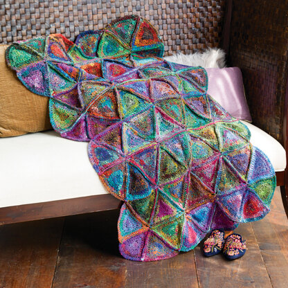 Noro 1318 Granny Quilt Afghan designed by Christine Lipscomb is a fabulously color lap blanket with separate triangle motifs crocheted in the round with Noro Ito. These triangles are joined with a crochet slip stitch on the right side, again forming a ridge and creating the patchwork effect. Crocheted in Noro Ito, with over 400 yards per cake, Ito is ideal for sweaters and accessories alike. Loosely plied colors masterfully fade from one tonal shade to the next creating gorgeous colorwork in your projects.