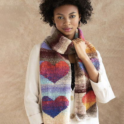 color hearts using the intarsia method knit in Kureyon. This lovely scarf is