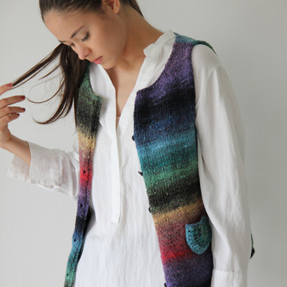 Noro Y1167 Button Down Vest is fun to knit as it is to wear women’s sweater knit in Kureyon. This stunning and stripy vest features a scoop neck, buttoned center front closure, and cute crocheted pockets. The vest is knit flat in pieces and then seamed. Noro Kureyon is the original self-striping yarn. It is incredibly popular year after year, and it's easy to see why! Each skein of Noro Kureyon is a multitude of natural colors, and no two projects will look exactly alike.