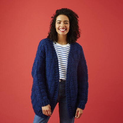 The Basket Weave Cardigan from Paintbox Yarns is a cozy open-front sweater with allover texture and a relaxed drop-shoulder fit. Perfect for layering over casual outfits, this sweater is the perfect thing to grab anytime the temperature drops! Knit in Paintbox Yarns Simply Super Chunky, a machine-washable and dryable acrylic yarn, this cardigan will work up in a flash on large needles. The basket weave pattern adds beautiful texture and ribbed trims provide a tidy frame - to the finished sweater, which is knit flat in pieces and seamed. Add a statement layer to your handmade wardrobe with the Basket Weave Cardigan and always be ready to get your cozy on! - Basket weave texture pattern is written out only.