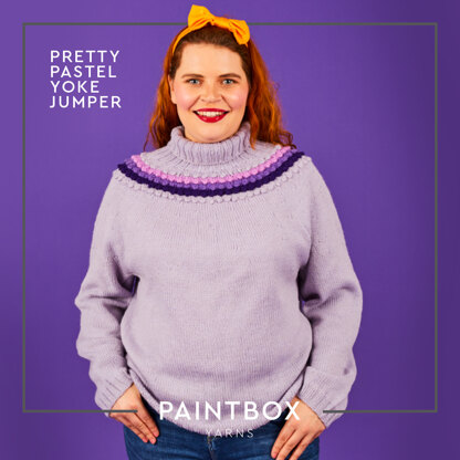 The Pretty Pastel Yoke Jumper from Paintbox Yarns is a cute and cozy pullover decorated with bobble-textured stripes. This sweater is knit in the round from the bottom up with the sleeves and body joining at the underarms to work the yoke in one piece. Classic circular yoke shaping gets a splash of color and interest with the bobble stripes, and a foldover turtleneck ramps up the coziness of your finished sweater! Choose 4 shades of machine-washable 100% Wool Worsted Superwash for your project and have a pullover that’s soft, warm, and just your colors with the Pretty Pastel Yoke Jumper! Yoke pattern is both charted and written out.