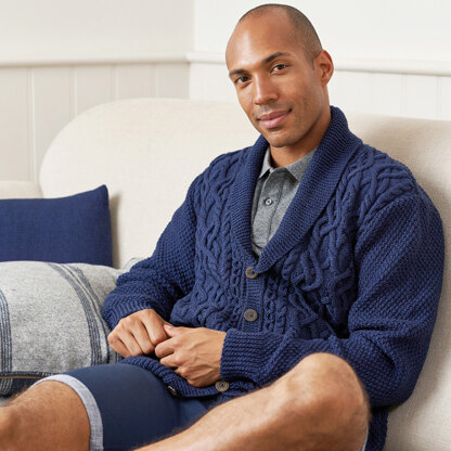 Every man should have a cable cardigan in his wardrobe! Rowan Lee from Cape Bay features a shawl