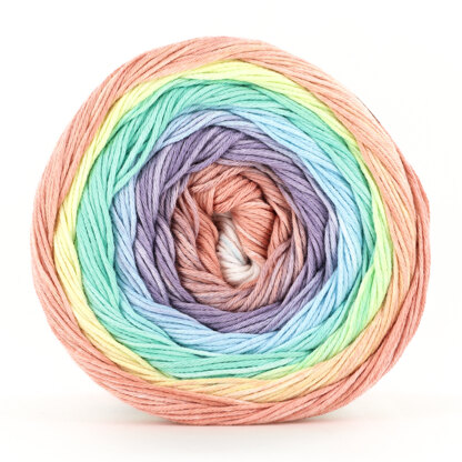 Sesia's Iride is a spectacular transition of color in a fingering-weight cotton! This yarn is a true showstopper that will take any garment to the next level. Iride's slow gradient makes it perfect for tees, shawls, cowls, and more for your summer wardrobe!