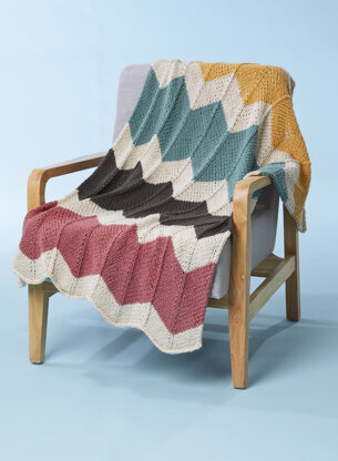 Tahki Yarns Bay View Blanket is a colorful and fun throw you’ll want to snuggle under knit in bulky Hatteras. The blanket is a quick and easy knit worked flat in one piece from the bottom up in a lovely chevron pattern. Hatteras from Tahki Yarns is a gorgeous organic cotton yarn with an excellent bouclé look. Wonderfully soft, think baby projects of every size and shape, chunky accessories, or a beautiful blanket. The chevron pattern is in written form only.