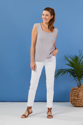 Valley Yarns presents 001 Bonita Springs from the Kathy Elkins Gold Coast Collection, a stunning women’s body-skimming tank with a slight A-line fit knit in Westhampton. The sweater has two neckline options, a v-neck or a squared-off scoop neck. Bonita Sprints is worked in the round from the bottom up, then briefly worked back and forth in rows with short row shaping to create the curve that dips longer in the back. Westhampton by Valley Yarns is a delightful yarn made with 100% Pima cotton!