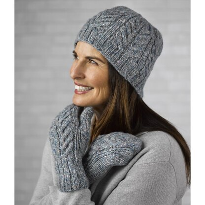 presents Parhelia, a gorgeous hat and mitten set knit in Taconic. A large cable