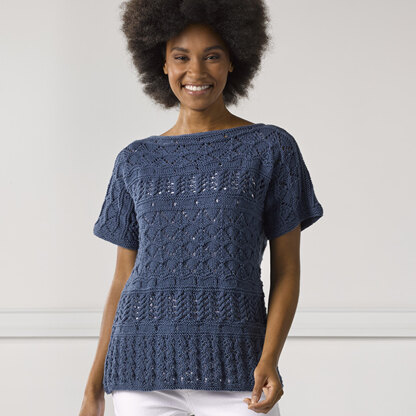 Valley Yarns Inlet is a women’s tee with a boxy, drapey and breezy eyelet sampler knit in Leverett. It