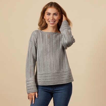 The Delancy pullover from the Valley Yarns Designer Series has a wonderful balance between feeling casual and comfortable and looking elegant and stylish. This drop-shoulder pullover pairs a gorgeous chevron lace column on the body and sleeves with a coordinating horizontal eyelet pattern at the hem and cuffs for an intriguing mix of texture. Delancy is knit flat in pieces from the bottom up and seamed in warm-weather favorite Leverett. This summery blend of Pima cotton and linen is smooth and soft and creates finished garments that are cool and comfortable to wear even as temperatures rise. Layer Delancy with bright tanks in the summer or over long sleeved tees in the winter, and have a graceful pullover that can easily transition from work to weekend. Lace patterns are both charted and written out.