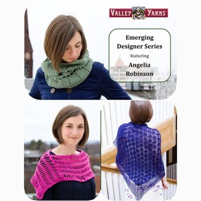 Our Valley Yarns Emerging Designer for Spring 2015 has created three crochet accessories ideal for adding a pop of color, a twist of style, and the perfect extra layer of warmth to any wardrobe, made with our popular Valley Yarns Colrain, Longmeadow, and 2/10 Merino Tencel. Included patterns are the Infinity Cowl made, the Ladder Ponchette, and the Pear Trellis Shawl.